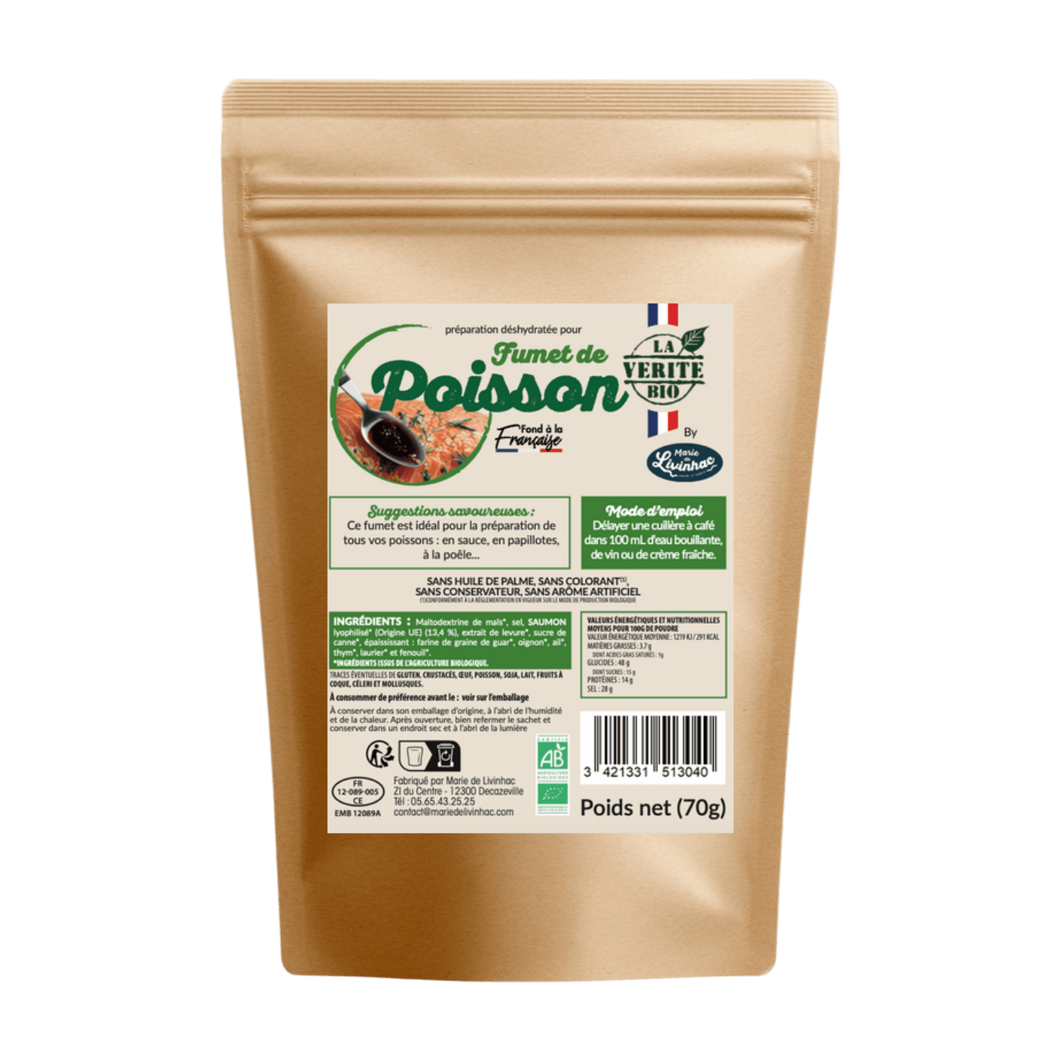 Suggestions savoureuses : Ce fumet est idéal pour la préparation de tous vos poissons : en sauce, en papillotes, à la poêle...