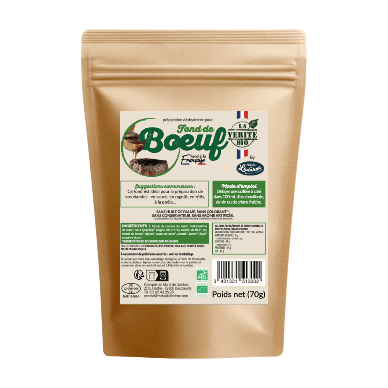 Suggestions savoureuses : Ce fond est idéal pour la préparation de toutes vos viandes : en sauce, en ragoût, en rôtis, à la poêle...